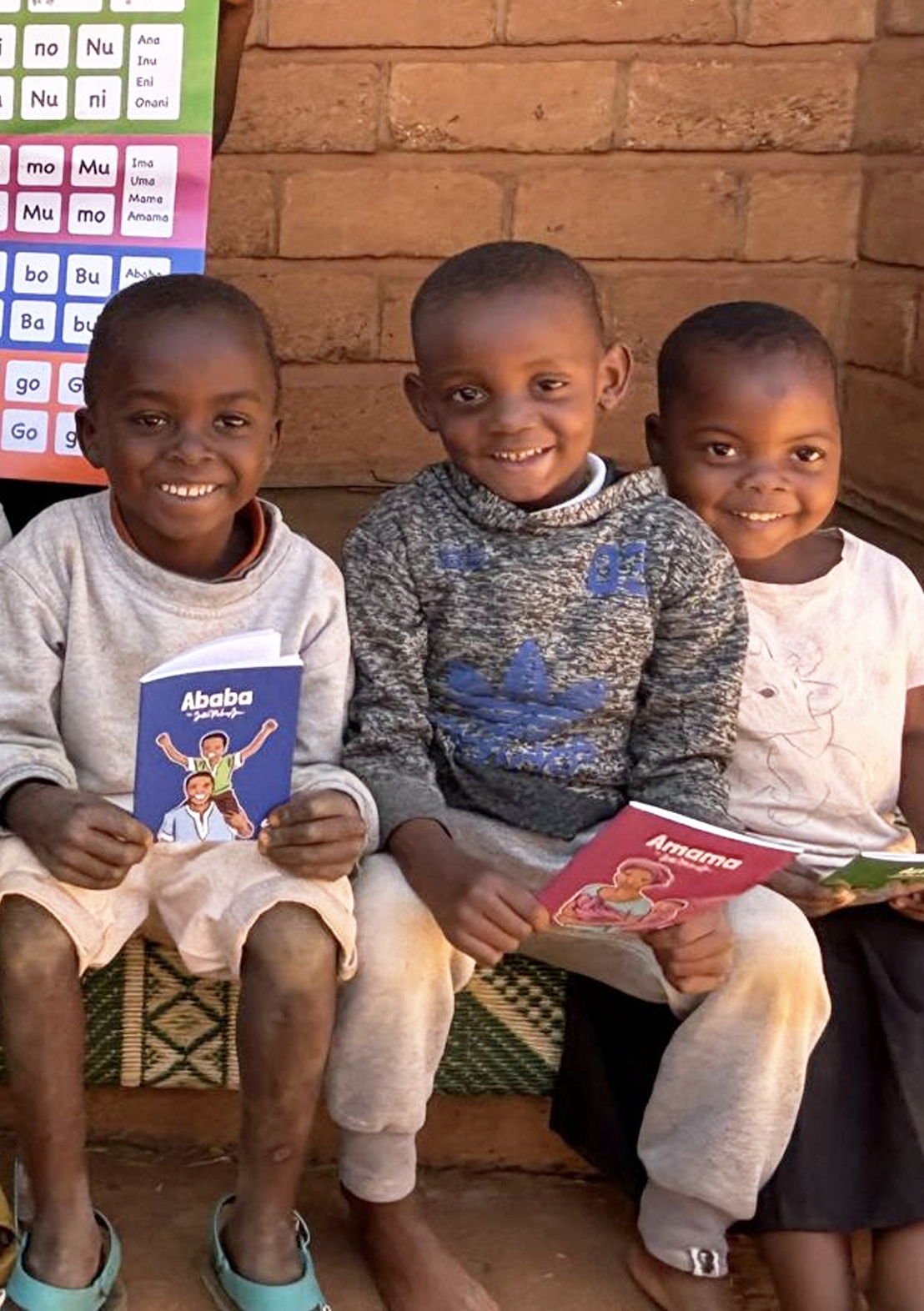 This project helps parents and teachers in Malawi, teach children aged 3 to 6 to read and write in Chichewa, the national language. The curriculum uses the letters A, E, I, O, U, N, M, B, and G. By the end, each child owns four storybooks made from words using those same letters, applying new skills to engaging stories.