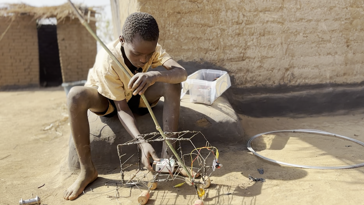Petersen is happy driving his wire car … now with a programmed sound and a light bulb. He will continue to work independently to experiment with more lights, sounds, movements and even sensors.
