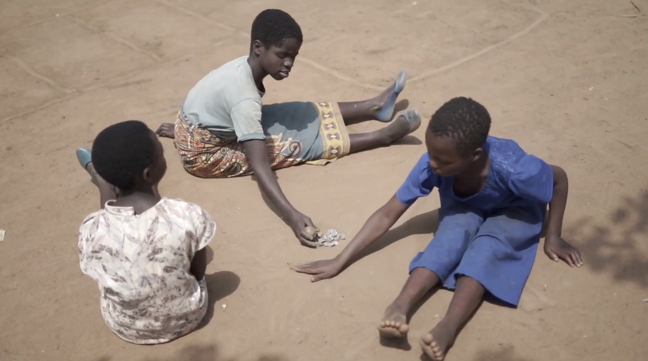 Using one hand throw the Mdodo (larger smooth stone) into the air while keeping your eyes on it. Before catching the Mdodo, with the same hand, pick one stone from the pile and place it into the hole.