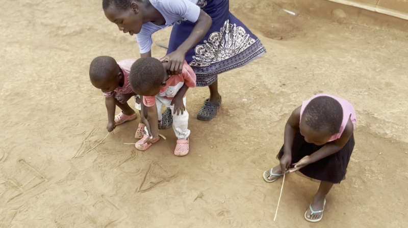 After the reading and writing lesson using the Mphanje books, the children went on the open ground and sang a Chichewa song which translates, “search and search for the letter A, when you find it, point at it." All the children were able to find and point correctly.